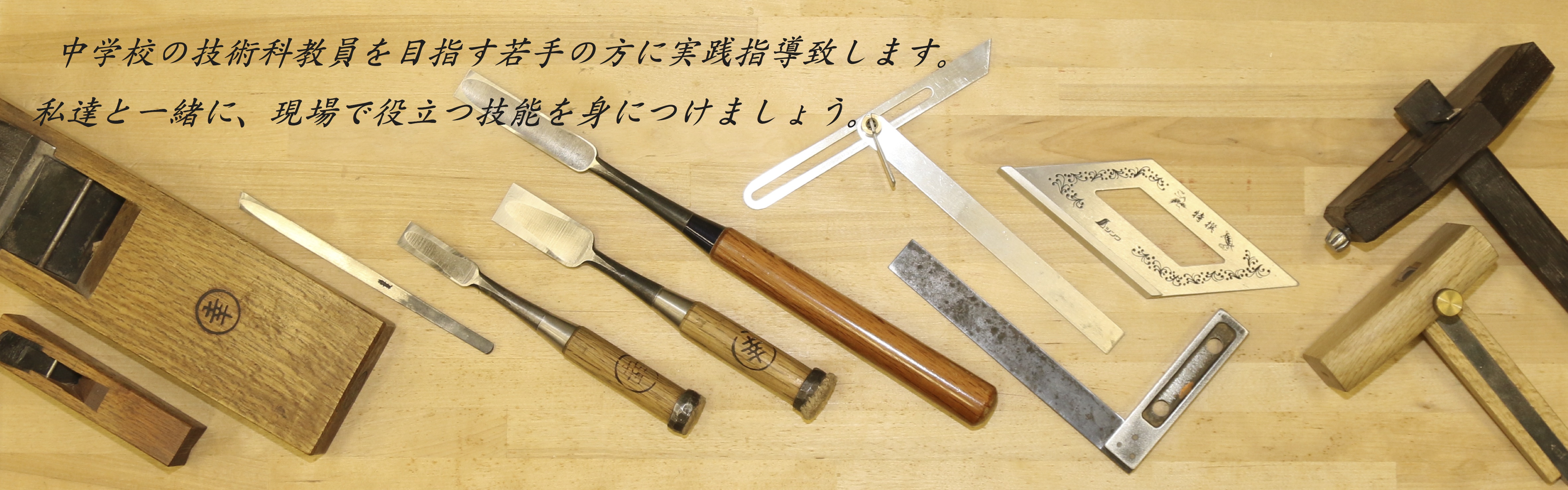 技術科は、本物の感動を生徒に伝えることができるポテンシャルの高い教科です。生徒がチョット苦労して、その達成感がうれしいと感じて貰える授業を技術科で実現しましょう。発展させれば、学校の特色を豊かにします。しかし、技術科教員が実技を学ぶチャンスは、非常に少ない現状がございます。また、技能をお持ちの先生方が、校務の忙しさ、学校の理解、保護者の理解、予算などの事情により、ご活躍できない状況をよく伺います。そんなお悩みをご相談ください。素晴らしい仲間と一緒に解決しましょう。そんな思いを抱きつつ、元気ある技術科教育を行う中学校を増やすことを楽しみに「技術科実践実技塾」を平成25年に設立いたしました。貴校の技術科教育の発展を期待いたします。